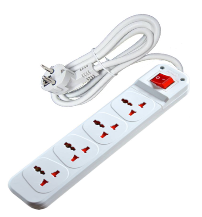 Universal quadruple connector with 3-meter cable, switch, and English plug