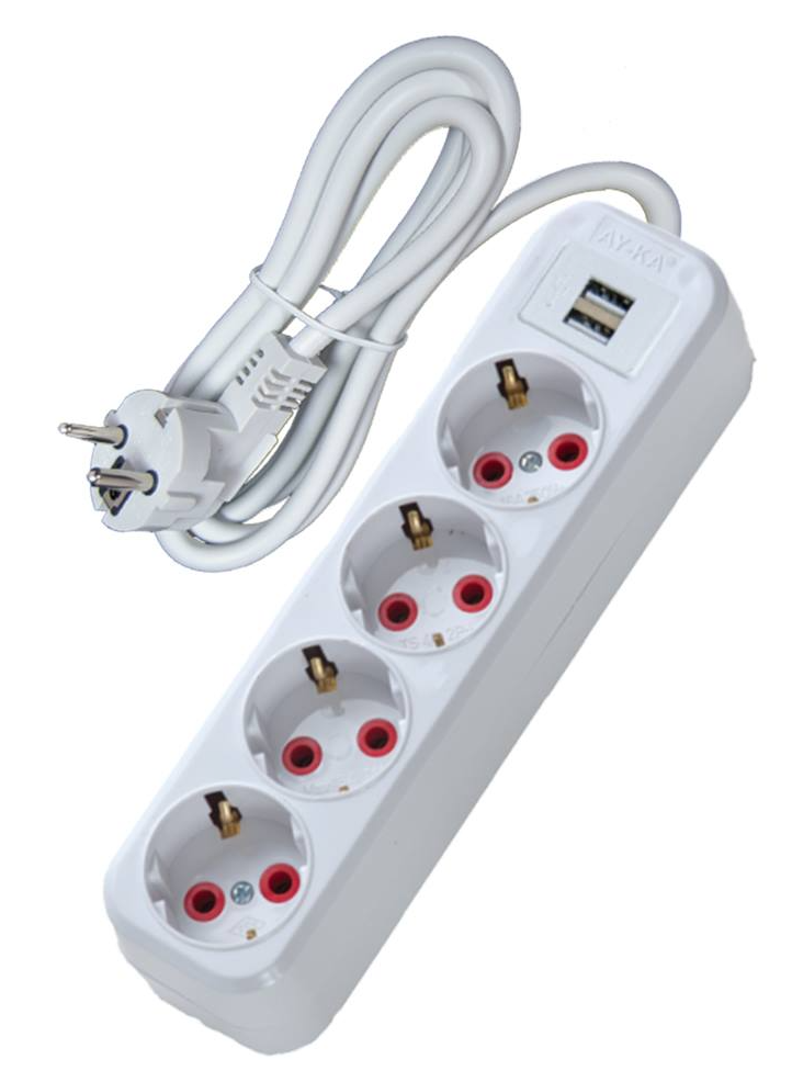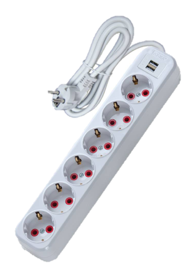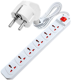 Universal quadruple connector with 3-meter cable, switch, and German plug